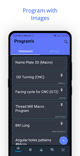 Every programer need cnc jobs, hence this cnc code app also offers you cnc question and answer through large cnc operator community. Every question can get answers so feel free to ask cnc question and get answers.