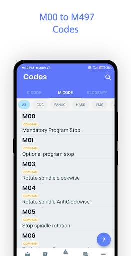 Now haas vmc program code also available in app. Fanuc and Haas M code is available in M code page.