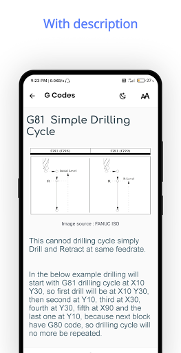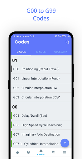 which includes many cnc vmc app terms (IE, - P for dwell) and hence this cnc g code m code app will help you while performing operation.
