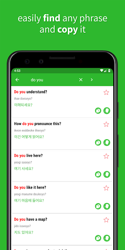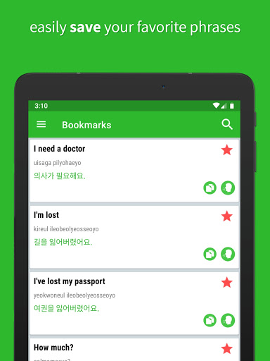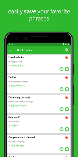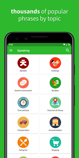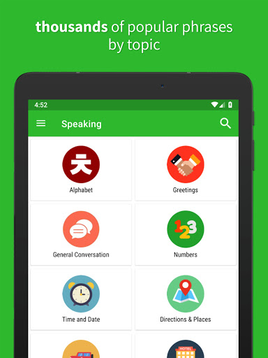 Learn Korean Free Offline is an easy to use mobile Korean phrasebook that will give visitors to Korea and those who are interested in learning Korean a good start in the language.