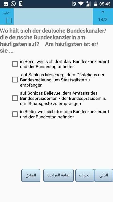 With just one click you can answer a question. You will see results immediately as well as at the end with all questions. Naturalization Test DW is the most intuitive scion test.