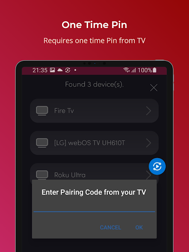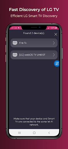 To use LG Universal Remote your LG Smart TV and your mobile device must be on the same Wi-Fi Network, once the Smart TV is detected then you will have to Enter the PIN shown on TV to start using LG Smart TV Remote.