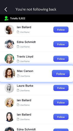 — View who is following you but you not follow back.You can follow back.