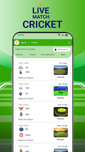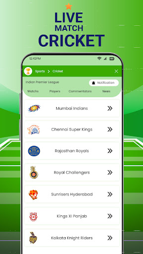 - Live Cricket IPL Complete match information with the team's current form and squads.