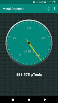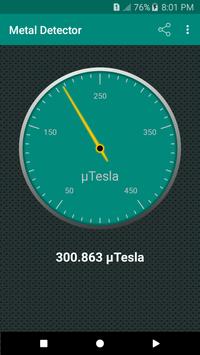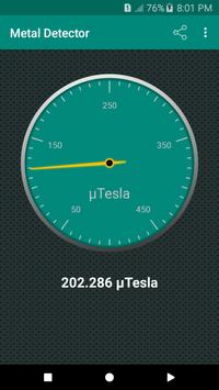 Metal Detector is an application which detects the presence of metal nearby by measuring the magnetic field value. This useful tool uses the magnetic sensor built-in your mobile device and shows magnetic field level in μT (microtesla). The magnetic field level (EMF) in nature is about 49 μT (micro tesla) or 490 mG (milli gauss); 1μT = 10mG. If any metal is near, the value of magnetic field will increase.