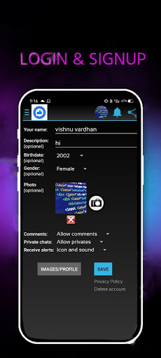 * Other user's profiles, including distance from you, what they would like to do, what they want.