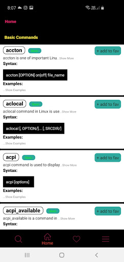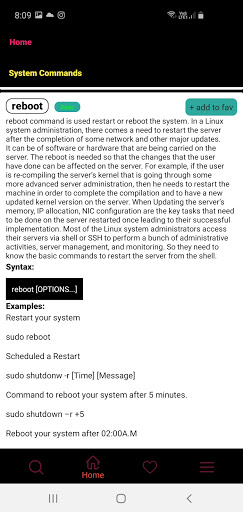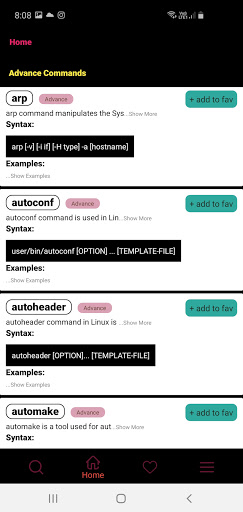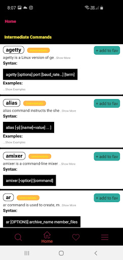 This app have complete Linux commands and have Basic Commands, Intermediate Commands, Advance Commands, System commands, File Commands, User Group commands, Network commands, Media Commands and others.