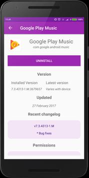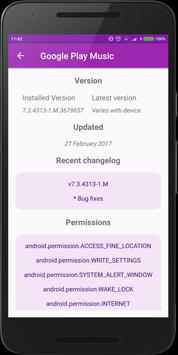 View detailed information about installed such as version of the application installed on the device, latest version of the application available on google play store, recent change log and last update date