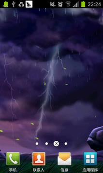 This is a lightning dynamic tablecloths, now, you can see the thunderstorm weather conditions in reality in the mobile phone. The sky was filled with thick black clouds, rain kept underground, realistic lightning flash in the mobile phone screen. You can set the lightning touch, when you touch the screen of the mobile phone, the lightning will appear.
