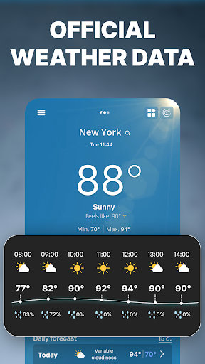 And if you're looking for even more convenience, our live weather widget makes it easy to be informed of the latest weather conditions without even opening the app. With options for hourly weather widget you can customize your widget to show the info that's most important to you.