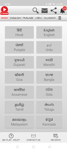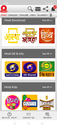 All TV Channels are categorised according to the nature for easy navigation. User may select Language>TV Channel or Search by TV Channel's Name & Language. Voice Search option & Recently Played Channels List are also available.