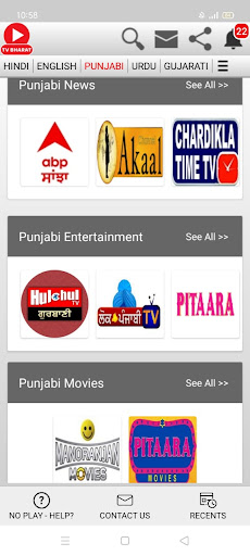 Các kênh truyền hình trực tiếp của Punjabi News;ABP Sanjha, Akaal TV, Global Punjab, Ấn Độ Tin tức Punjab, Living India News, MH One News, News18 PB_HP, PTC News, TV Punjab, Zee PB_HR_HP.Gulistan News, JK 24x7 News, News18 Urdu, Zee Salaam.