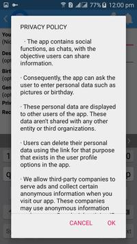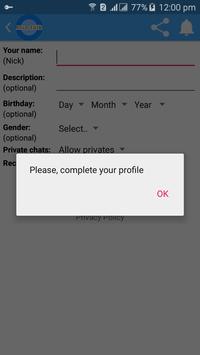 Well, when you first open the app, you can either log in with your Facebook account or complete a profile form to let others know a little bit more about you. The items in the profile are: Name, nickname, optional description about yourself, birthday, gender, and photo. You can also specify whether receiving comments or private messages are allowed or not.