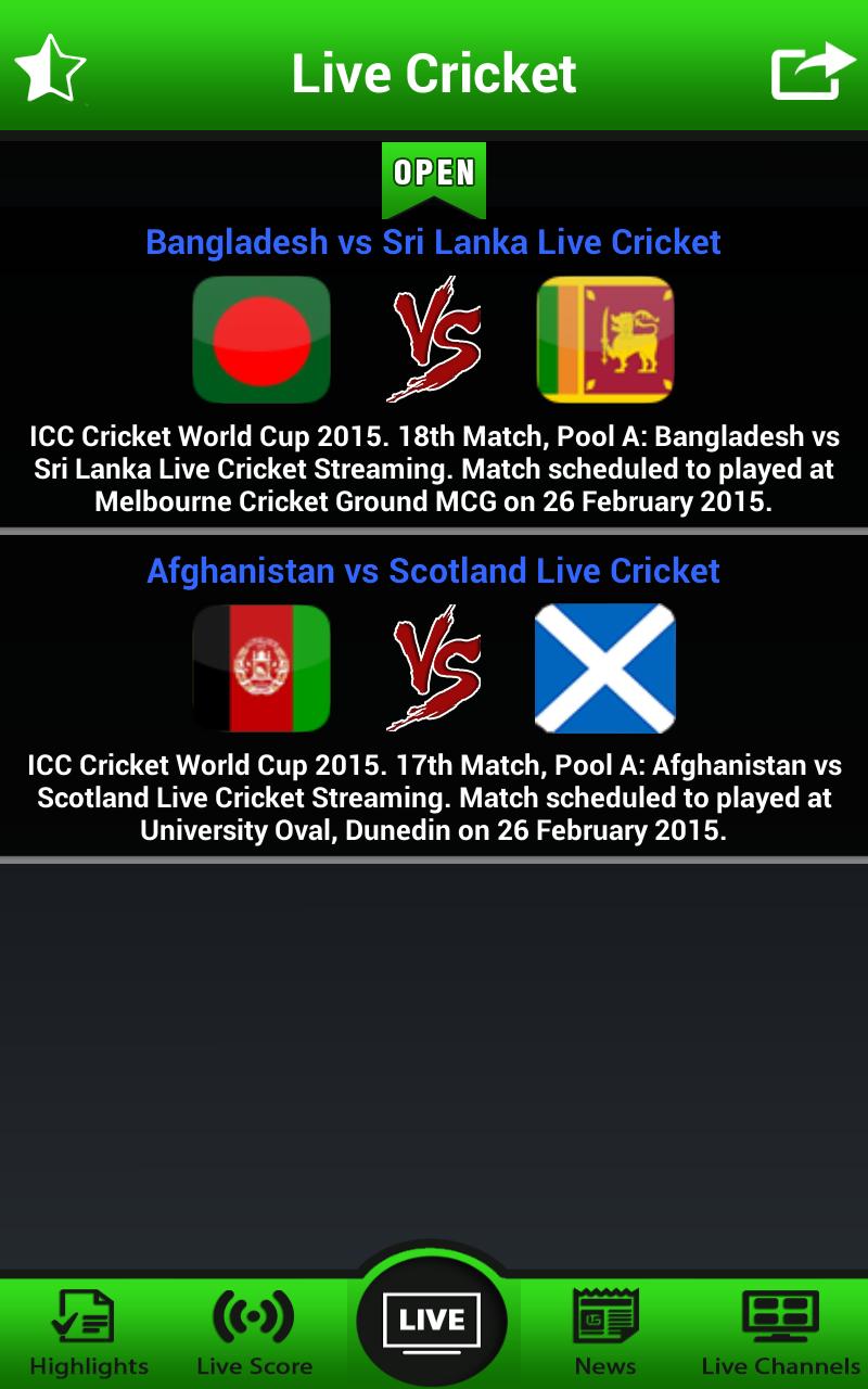 This app allows you to watch any cricket match no matter where you are. You just need to have an internet connection and a Smartphone and you will be good to go.