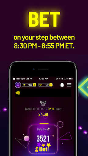 1) Submit your steps between 8:30 pm - 8:55 pm ET by tapping “Bet!” on the dashboard.