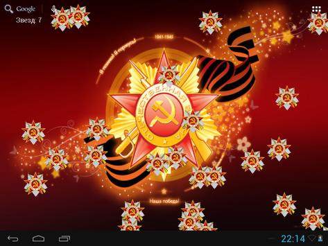 Живые обои для майских праздников, которые не только украсят Ваше устройство, но и дадут возможность немного развлечься, собирая все больше и больше звезд Победы.