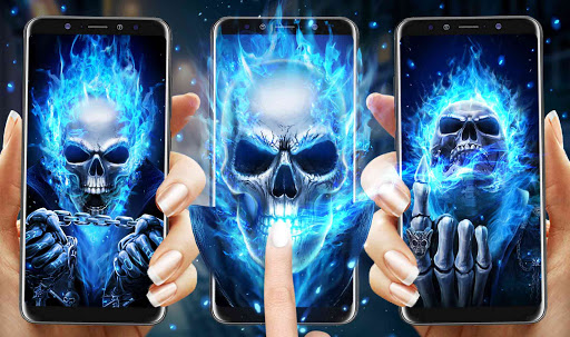 Have you ever feel so tired of changing your phone wallpaper frequently? If your answer is “Yes”, it means you haven’t found the best wallpaper for your phones! Now I’ll introduce you the newest horror Blue Flaming Skull Live Wallpaper for you.