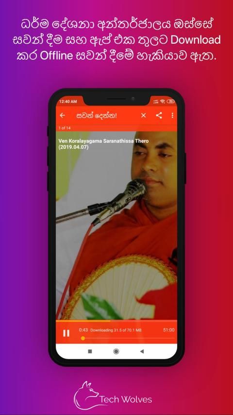*ධර්ම දේශනා අන්තර්ජාලය ඔස්සේ සවන් දීම(Streaming) සහ ඇප් එක තුලට Download කර Offline සවන් දීමේ හැකියාව ඇත.