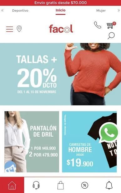En Facol queremos que disfrutes comprando. Es por eso que te obsequiamos el envío si tus compras son superiores a un monto determinado. Tienes disponible además nuestro sistema de Pago Contraentrega y Devoluciones Gratuitas, para que, sin compromiso, puedas probarte ese pantalón que te ha encantado.