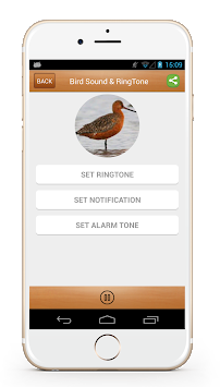 All sounds can be saved as Ringtones, Notifications and Alarms by long pressing on a bird and selecting the relevant option.