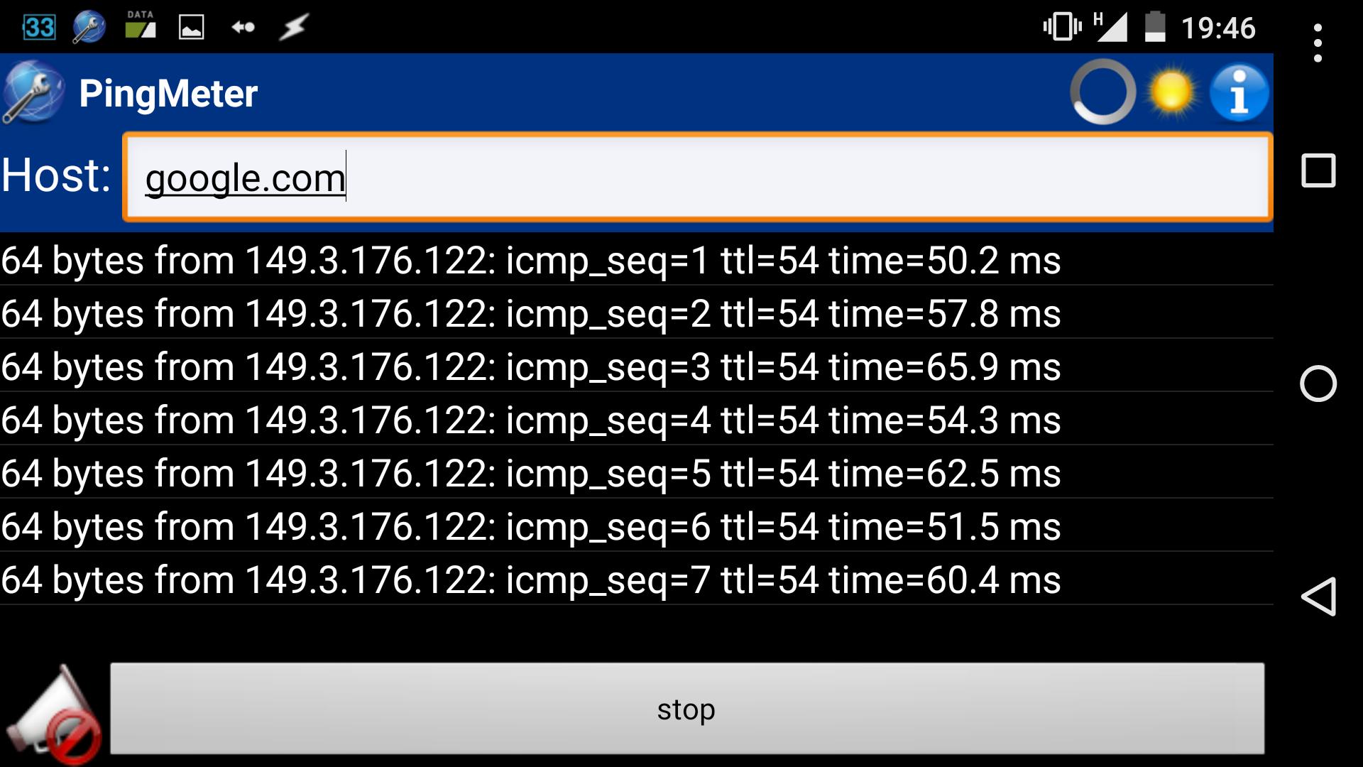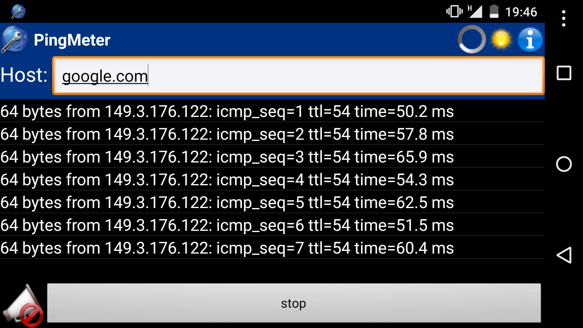 NOTE: PingMeter depends on ping command on your phone, this must be executable to allow PingMeter to run. Usually there is no problem, no user action is required, but some vendor (or Android release) could disable ping to normal user (non-root). This is not due to PingMeter and it can\'t resolve the limitation, sorry.