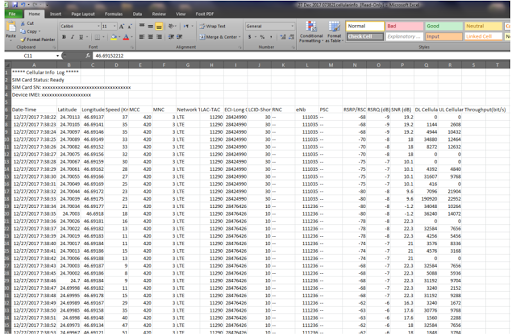 - Signal strength indicators RSSI, RSCP, RSRP, RSRQ, SNR*.