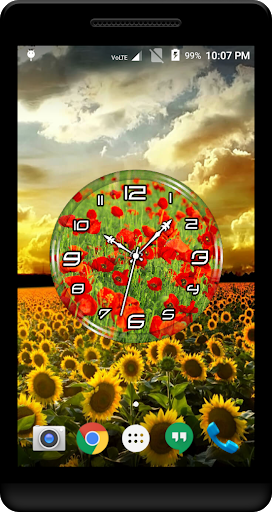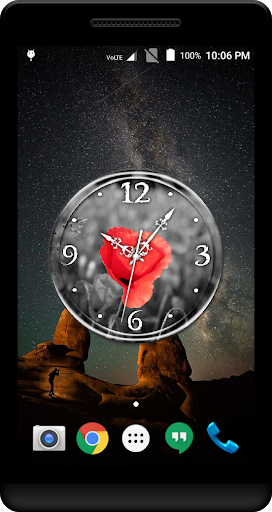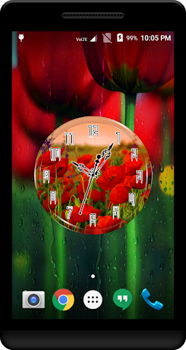 Red Poppy clock live wallpaper shows a high quality analog clock.