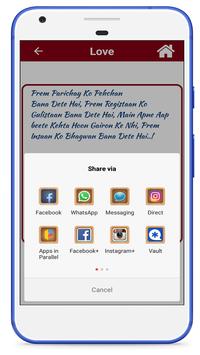Tap the share icon below to share your favourite custom messages to contacts or you can also share messages via lots of social apps.