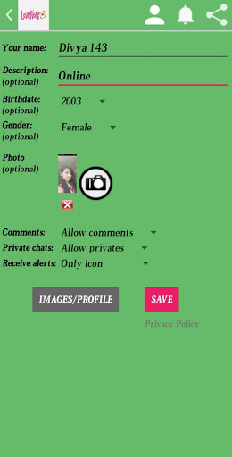 Well, when you first open the app, you can either log in with your Girls Live Video Talk account or complete a profile form to let others know a little bit more about you. The items in the profile are: Name, nickname, optional description about yourself, birthday, gender, and photo. You can also specify whether receiving comments or private messages are allowed or not OR Also You Can Log In with Google.
