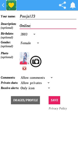 Well, when you first open the app, you can either log in with your Girls Live Video Talk account or complete a profile form to let others know a little bit more about you. The items in the profile are: Name, nickname, optional description about yourself, birthday, gender, and photo. You can also specify whether receiving comments or private messages are allowed or not OR Also You Can Log In with Google.