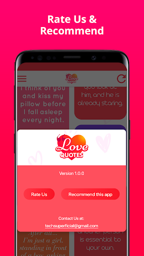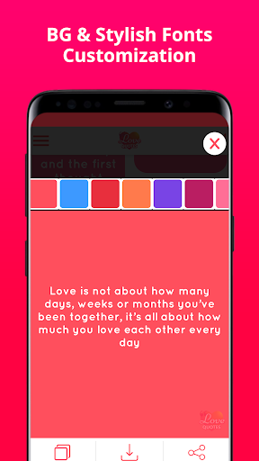 Love Quotes is an application that offers you a huge collection of free love quotes for your loved ones. We enable most customization including different background color options & text styles which you can either download, copy text or directly share on social media messaging applications to friends or family.