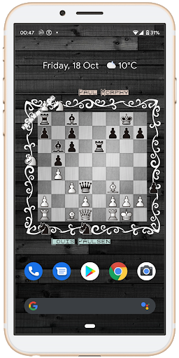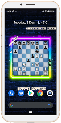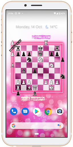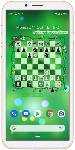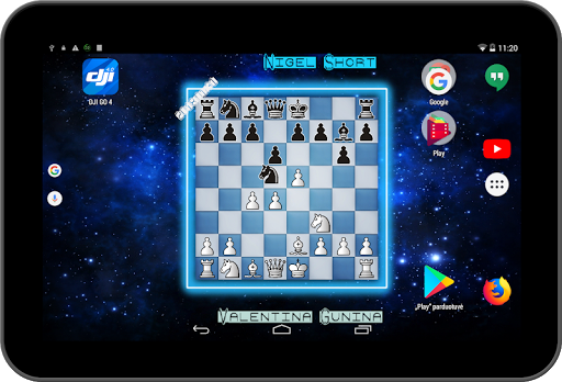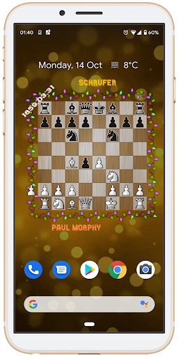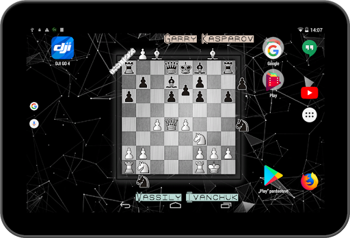 Animated wallpaper for chess lover who wants to see a board with moving pieces and names of the best players ever lived!