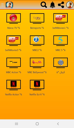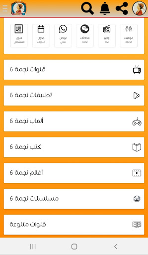 يحتوي هذا التطبيق على العديد من القنوات اللتي تعمل بعرض نجمة 6 و بالأنترنيت العادي كما يحتوي كذالك على أقسام مختلفة من افلام و مسلسلات و غير ذاللك
