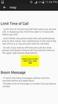 - Set up time of Incoming call and Outgoing call ( In Incoming call start when you answer call. In Outgoing Call, limit time start in 10 seconds before you dial)