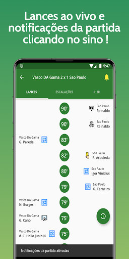 Hanggang sa ang mga minuto ng mga tugma ay na -update sa totoong oras, huwag makaligta Na -iskor ang layuning iyon laban sa pagpatay sa oras ng layunin !!Dito maaari mo ring makita kung sino ang nakapuntos at kung sino ang nawalan ng mga parusa. Lahat ay tumutugma sa iyong paboritong koponan ay maglaro, paganahin ang mga abiso ng iyong koponan na hindi makaligtaan ang anumang tugma !!Makatanggap ng lahat ng mga layunin mula sa iyong koponan live !!