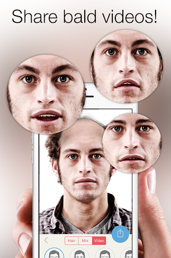 Fully animated, your hairless-self will even smile, blink, yawn and more. Make yourself, friends and family bald, then send them a video/photo of their comb-over via Skype, Viber, Instagram, Twitter, Facebook, MMS, YouTube, Email, Gmail, and more. (depending on what applications you have installed on your phone)