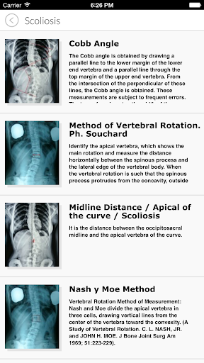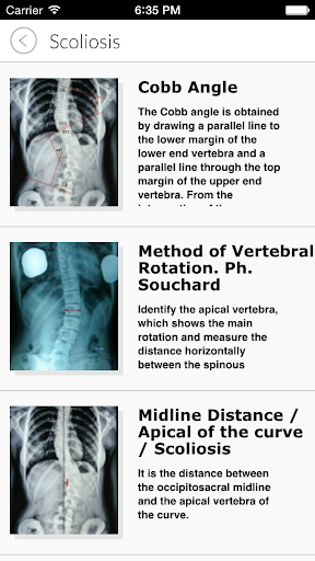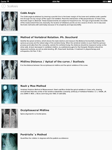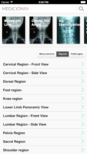 you will find the description and the drawing of radiological measurement techniques in orthopedics and traumatology, 120 high-quality radiographic images. Directed to physical therapists specialized in the areas of manual therapy (RPG, Osteopathy, etc). You can start your search entering from "regions", "pathologies" or "measurements". You can also enter the keyword in the search icon. It is available in spanish, english and portuguese. In no way is the focus of this app, replace clinical evaluation we conduct to our patients. This app aims to explore the methods of measurement in complementary imaging studies, and to demonstrate and quantify the radiological changes obtained after the physical therapy treatments.