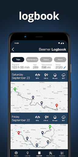 Motorcycle legacy including all rides, maintenance activities, status messages and alarm notifications.