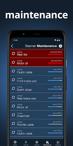 Motorcycle maintenance todos at a glance. Receive messages. Use our huge maintenace parts database.