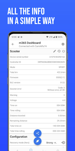 - Possibility to view data and graphs on "offline mode" (without connection to the scooter).