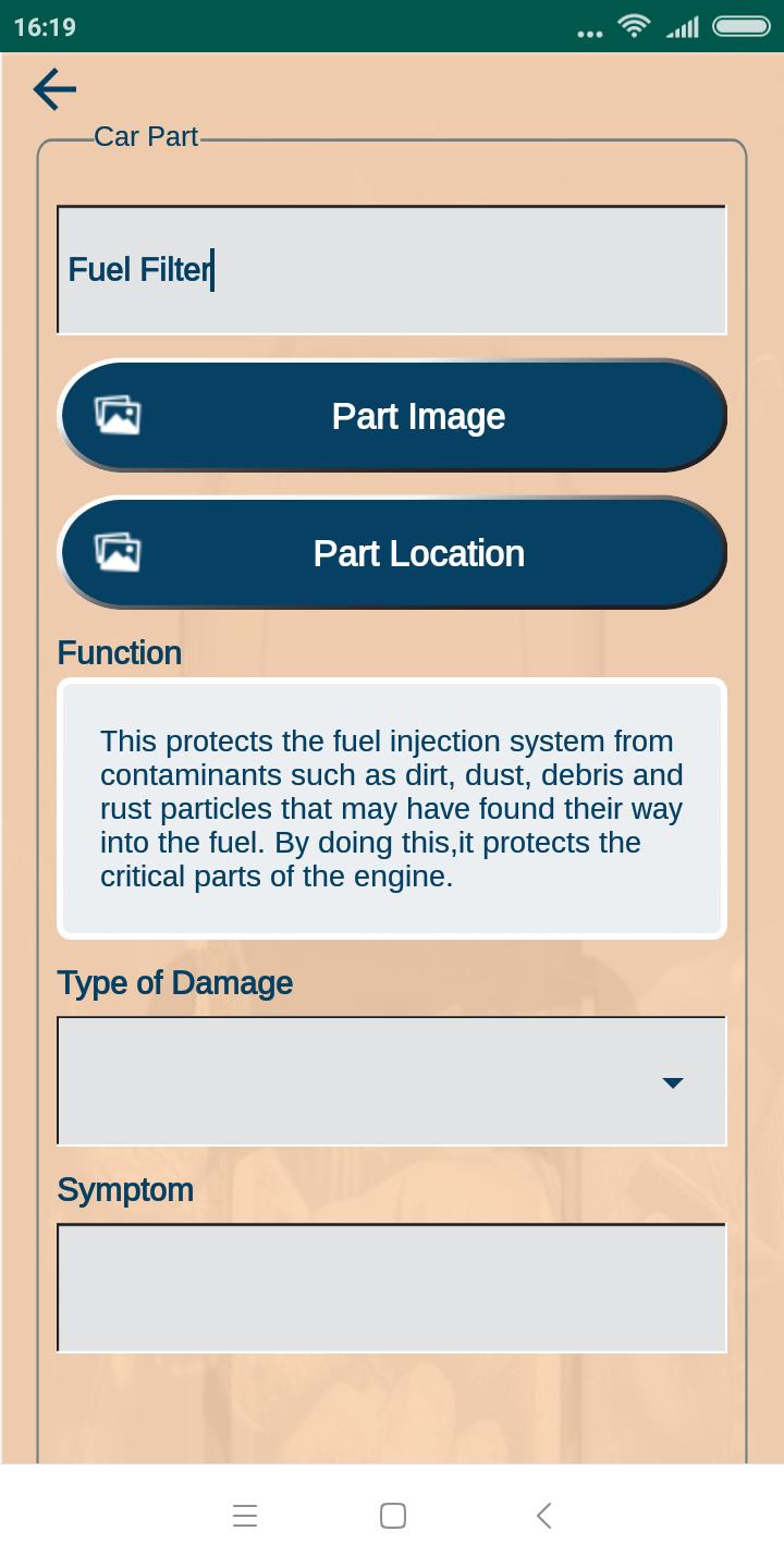 The application allows users to access authorized garages and auto part dealers, as well as find information on how various part of their cars function.