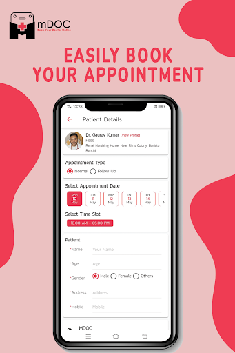 Download the mDoc app for booking doctor appointment today. The user get the appointment in just 5 simple steps: