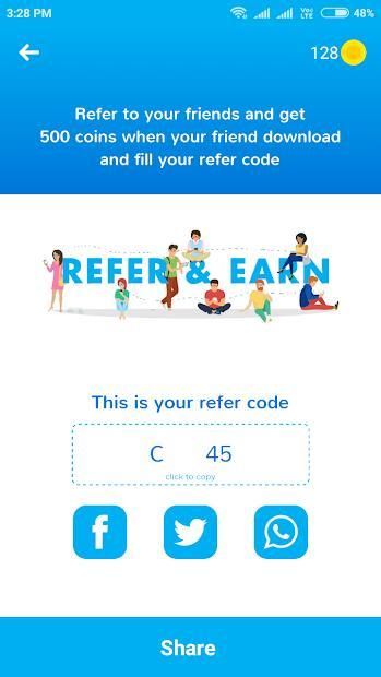 6) Refer the app to your friends and both of you can earn by this.
