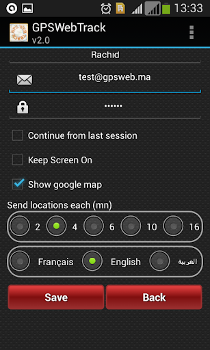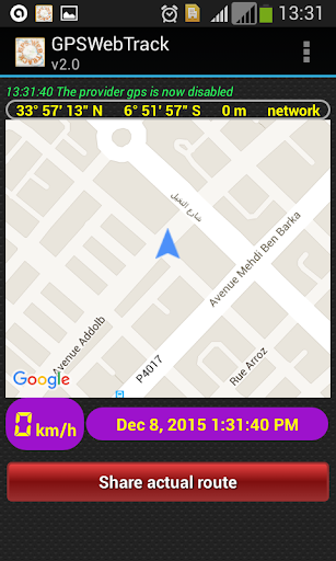 Localize and track for free, in real time or deferred, the route of your family or fleet, through the GPS of an Android mobile phone with an internet connection (2G, 3G, 4G or Wifi).