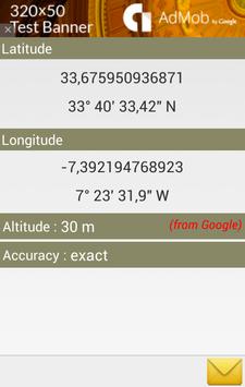 l'altitude (l'élévation du niveau de la mer) peut être calculer avec GPS ou donnée par google en cas de connexion à l'internet.