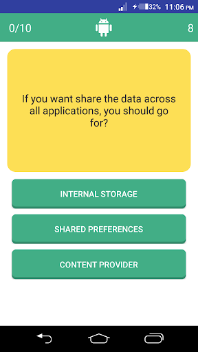 This quiz app comes with a clean and neat design and the interface is so user-friendly that you’ll get the whole idea once you start answering the multiple choice questions for the first time. You just need to hit the Start button and answer 10 questions about developing apps on Android at the given time. The higher your score is, the more professional coder you are.