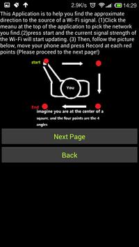 Basically, the application will read the signal level at 4 different spots around you and tell you which direction it might be.