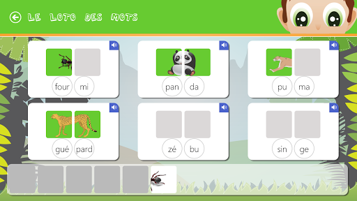L’enfant dispose de nombreuses aides audio et visuelles pour lui permettre de lire les syllabes.