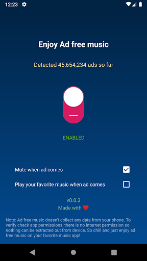Free Ad Guard enables you to listen/watch music/videos on your favourite music app without ads. Free Ad Guard automatically detects when ad comes and mute it just for you. You can also listen to your another favourite music when ad comes.