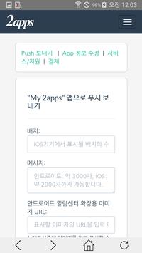 2apps 서비스 전용 앱입니다. - 새로운 앱 등록, 관리 - 고객에게 푸시알림 발송 - 해피엔지니어와의 1:1 대화식 서포트 - 서비스 결제 2apps.kr 홈페이지의 모든 기능을 사용할 수 있습니다. *** My 2apps는 2apps 서비스로 만들어졌습니다.